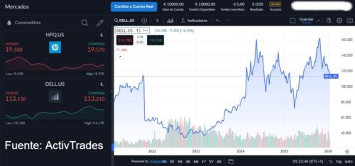 Las acciones de HP han caído más de 40 por ciento en el último año en la Bolsa Mexicana de Valores, mientras que los títulos de Dell han avanzado más de 2.2 por ciento, según ActivTrader la plataforma de trading de ActivTrades.